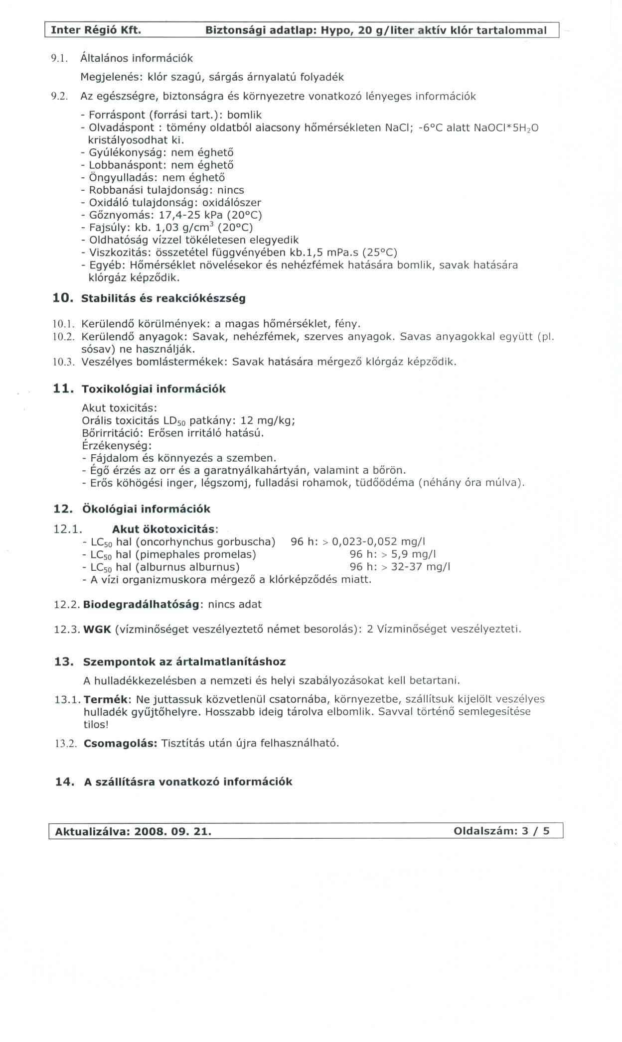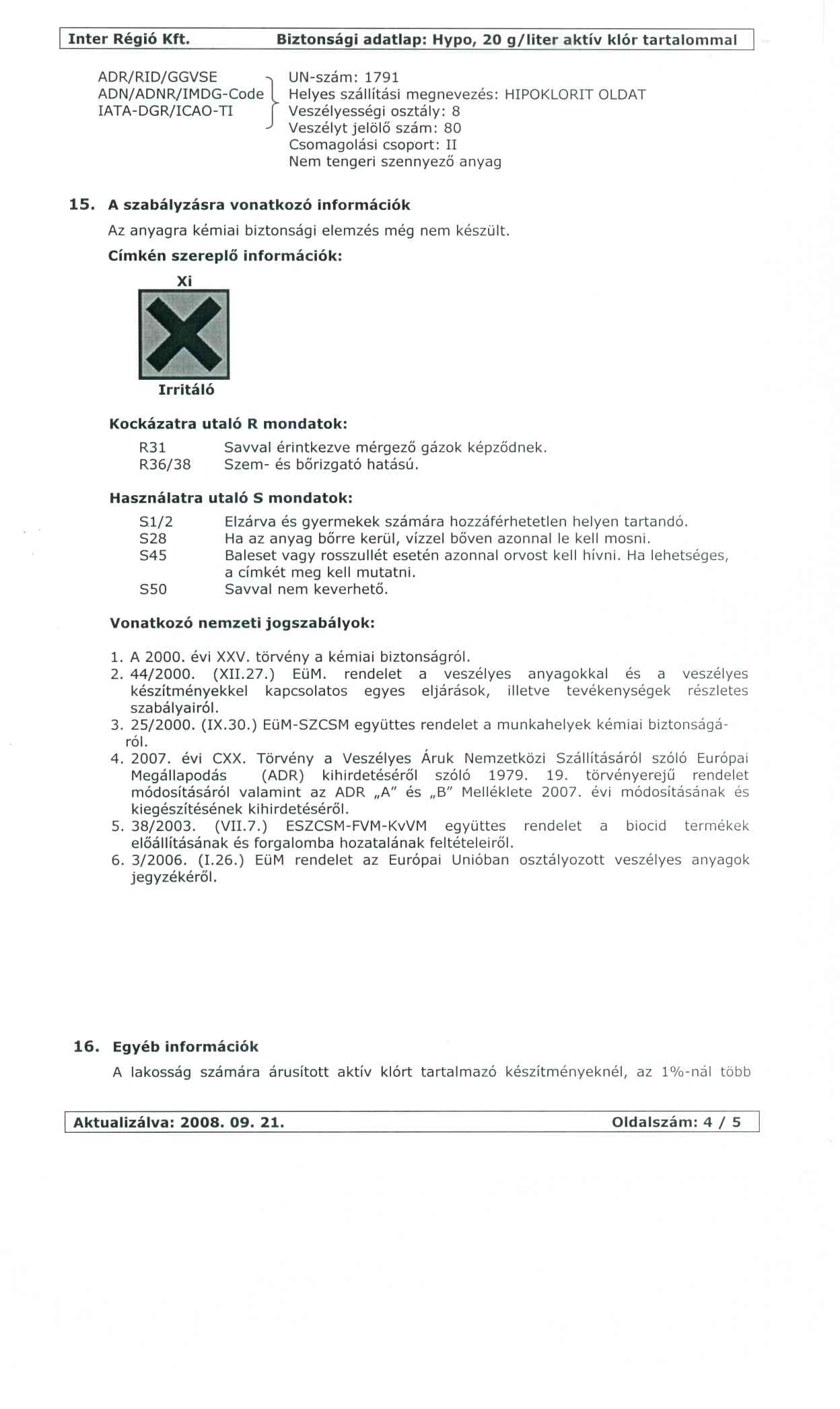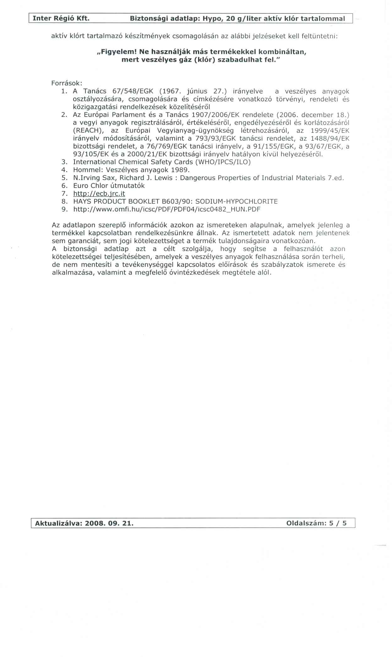 • Biztonsági adatlapok, CBA árjegyzékek